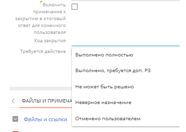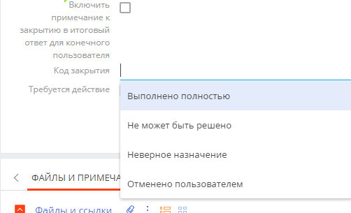 - В кодах закрытия отсутствует код «Выполнено, требуется доп. РЗ»